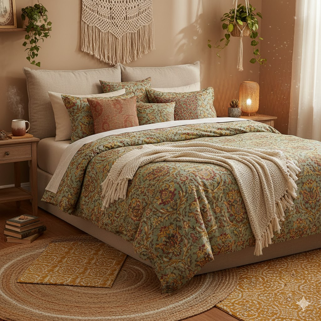 Winter's chill has a magical way of making us crave warmth, comfort, and a sanctuary to retreat into. And what better way to achieve that snug haven than by infusing your home with the free-spirited charm of bohemian style, elevated by the unique beauty of hand block prints? This winter, let's transform your living space into a cozy boho escape that feels both inviting and incredibly personal.