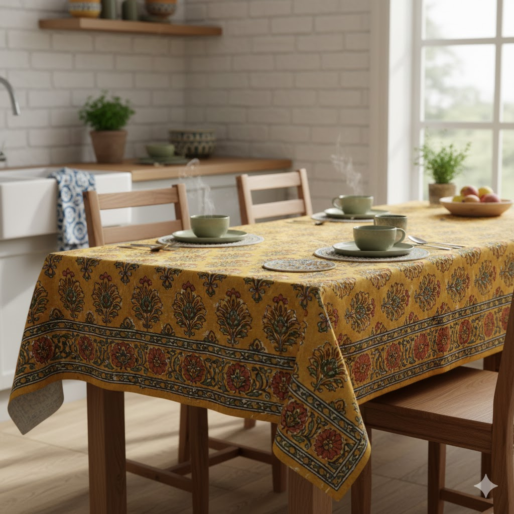 Don't limit block prints to just your living and sleeping areas. Bring their charm into your dining space with a hand block print tablecloth or placemats. This is an easy way to elevate everyday meals and make even a simple breakfast feel special.