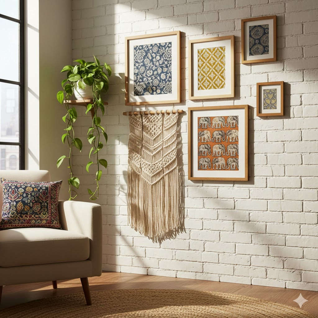 Hand block prints aren't just for textiles. Consider framing smaller swatches of block-printed fabric as unique wall art. This is an affordable way to introduce art into your home that feels deeply personal and aligned with your boho aesthetic.