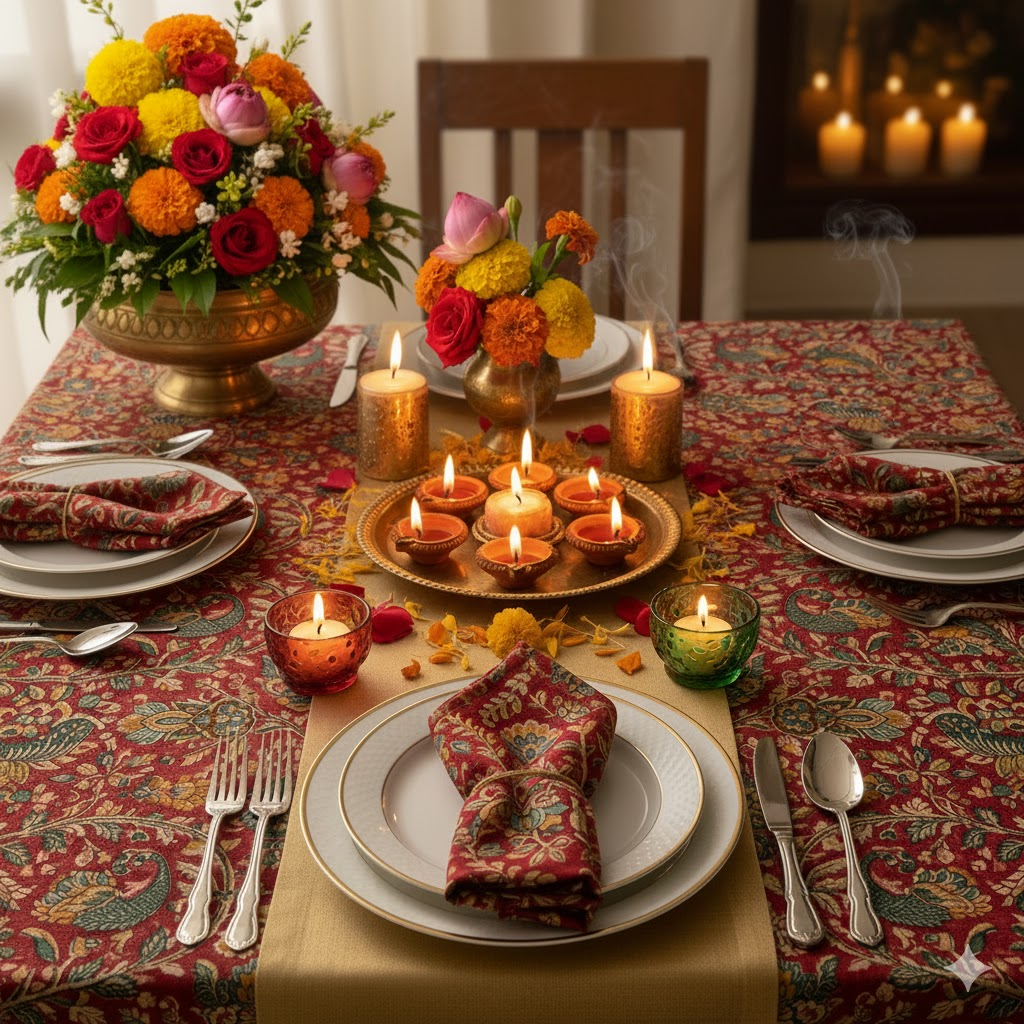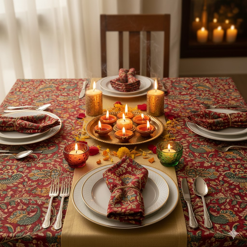 Diwali, the festival of lights, is a time for joyous celebrations, family gatherings, and of course, delectable feasts. As you plan your Diwali dinner, don't just focus on the menu; elevate the entire dining experience with a stunning table setting. This year, let's explore the timeless charm of hand block printed linens to create a table that's as vibrant and welcoming as the festival itself. This visual and practical guide will show you how to weave tradition and elegance into your Diwali dinner décor, from pairing prints and colors to incorporating DIY accents.