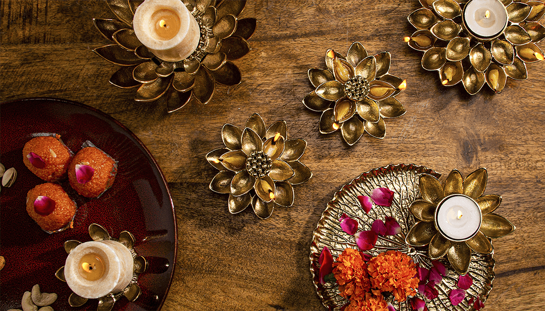 No Diwali table is complete without the soft, flickering glow of diyas (oil lamps) and candles. These traditional elements not only illuminate your table but also symbolize the triumph of light over darkness. Arrange a cluster of earthen diyas in the center of your table, perhaps on a decorative tray or nestled amongst fresh flowers. You can also place smaller diyas at each place setting for a personal touch. T-light holders in brass, ceramic, or even colorful glass can add variations in height and light. Scented candles can further enhance the atmosphere, filling your dining space with festive fragrances like sandalwood, rose, or jasmine. The interplay of candlelight with the intricate patterns of your hand block printed linens will create a truly magical setting.