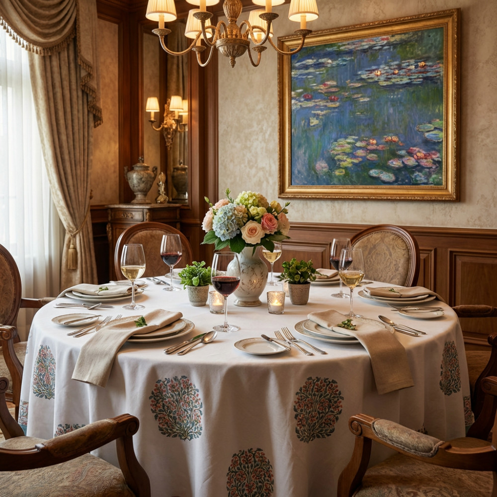Round Cotton TABLE COVER Hand Block Printed on 100% Cotton TABLECLOTH Sheeting.