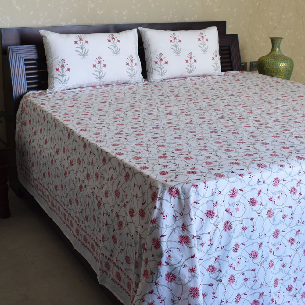 King Size Block Printed Percale Fine Cotton Bedspread with 2 Pillow Cases | 200848